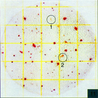 Count=83因?yàn)樵趐etrifilm AC測試片上菌落是紅色的,你會和不透明的不規(guī)則形狀的事物顆粒區(qū)分開,見圓圈1和2. |
