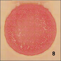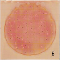 注意圖4至圖9中培養(yǎng)基顏色的變化。隨著大腸菌群數(shù)和產(chǎn)酸的增加,培養(yǎng)基的顏色由淡桔黃色(圖4)逐漸向明顯的粉紅色(圖9)轉(zhuǎn)變。同時做陰性對照有助于區(qū)分培養(yǎng)基的顏色。
