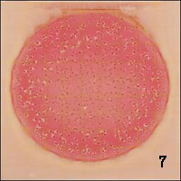 在接種區(qū)邊緣的菌落和氣泡可能較小,且邊緣培養(yǎng)基外觀略有差異,但不會影響菌落的計數(shù)。見圖7。