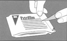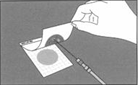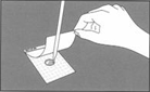 7、將測試片置于平坦表面處,揭開上層膜。 8、使用吸管將1ml樣液垂直滴加在測試片的中央處。